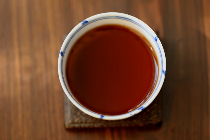 總體感覺:7.50克,150CC蓋碗,洗茶兩遍,1泡15S,以后每泡酌情增加數秒出湯。餅身緊實,條索褐黃。茶湯深紅,泛著熟茶的甜香,入口絲綢般的滑柔,略帶巧克力味的輕苦底,苦化后,輕輕的回甘伴隨生津緩緩泛起,潤感飽滿,茶氣較足,留存度佳。整體湯感溫潤如玉。按熟茶高標準衡量,厚度、力度相對稍弱。茶底用料較細嫩。就茶論茶,整體而言是一款次新好熟茶。