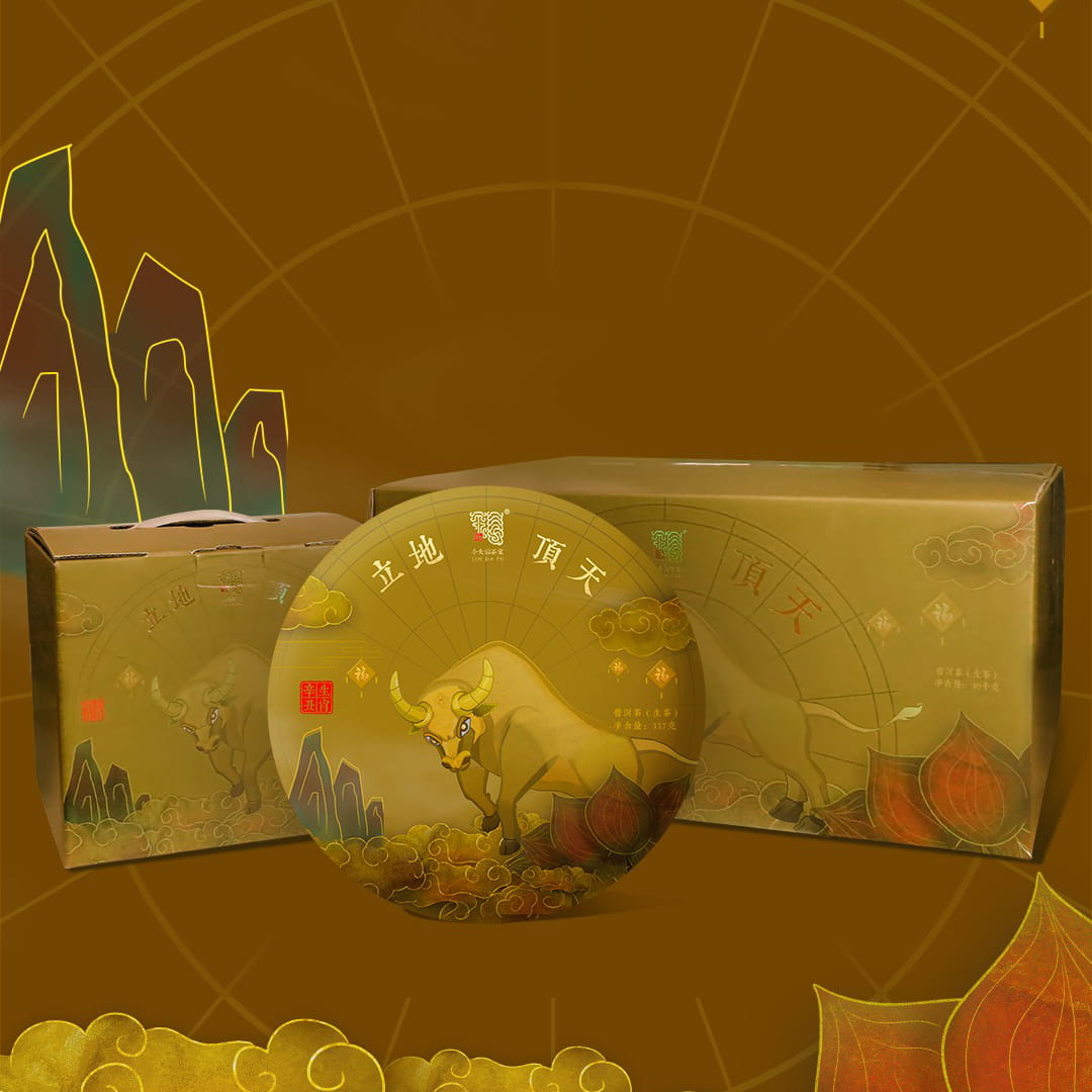 隨著生肖文化的不斷發展和普洱茶市場對高品質、個性化茶葉需求的增加,今大福茶業推出首款生肖茶——立地頂天·班章牛。這款生肖茶以班章大葉種早春茶為原料,融匯了今大福多年制茶經驗與拼配工藝,精心打造而成。