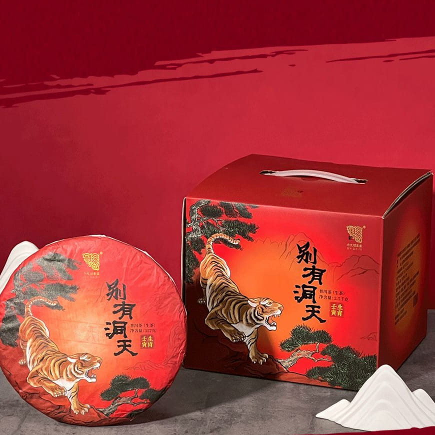 去年,今大福推出了班章生肖餅系列,以生肖文化為主題,巧妙地將中國茶文化和中國傳統文化相融合。今年,他們再次推出全新款式的生肖茶——“王寅虎餅”。