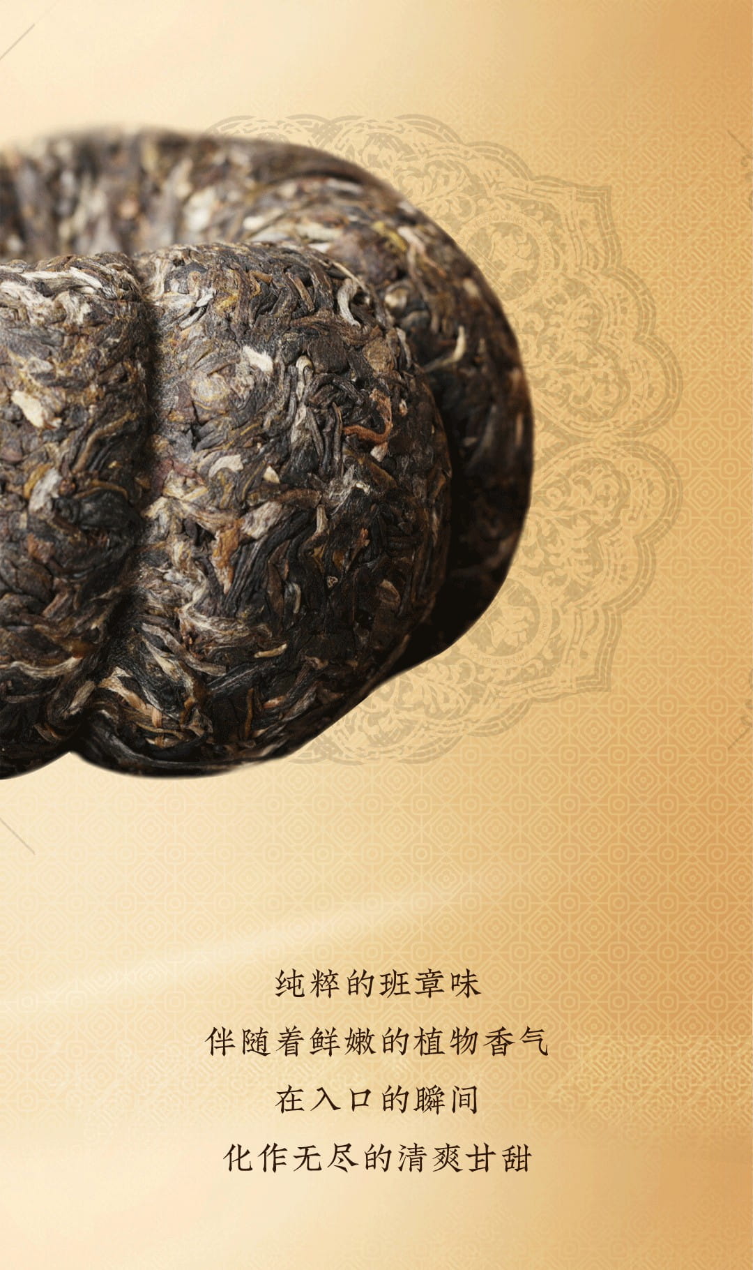 這款班章金瓜茶呈現出純粹的班章味,并伴隨著鮮嫩的植物香氣,在入口的瞬間化作無盡的清爽甘甜。它不僅繼承了金瓜貢茶所具有的歷史和文化底蘊,還在其中注入了更多的時代感和創意元素,使得它在普洱茶品類中顯得格外引人矚目。