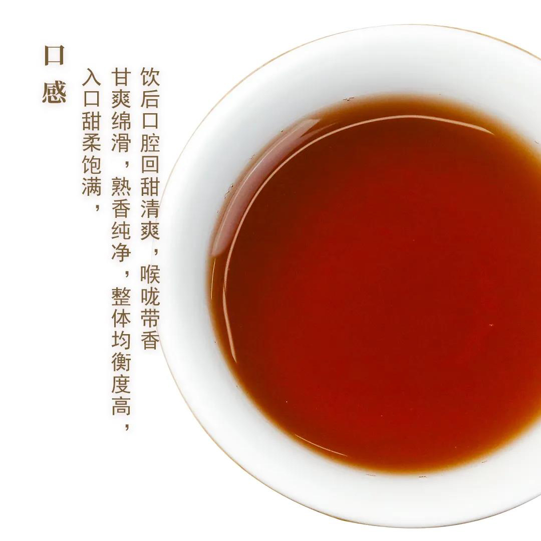 這款茶的湯色呈現(xiàn)出濃郁的紅色,并充滿了強(qiáng)烈的油質(zhì)感。同時(shí),在口感方面,它也有著清爽甜美的回甘和入口柔順、滋味豐富的特點(diǎn)。整體來看,熟香十分純凈,均衡度非常高。